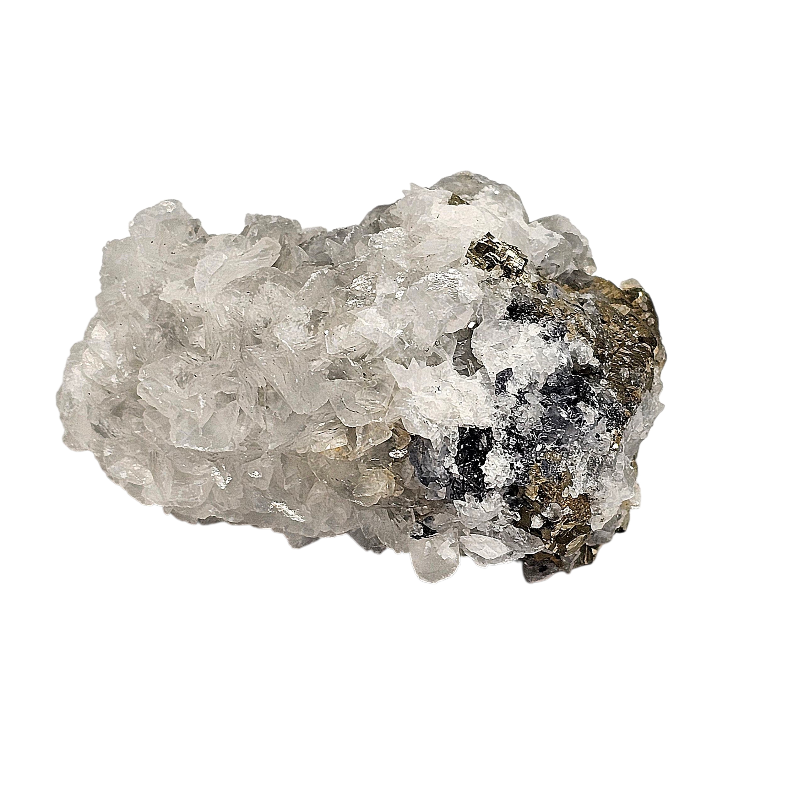 Dieser naturbelassene Pyrit-Calcit-Dekorationsstein überzeugt durch seine goldschimmernde Struktur und einzigartige Form – ein echtes Unikat aus der Natur.