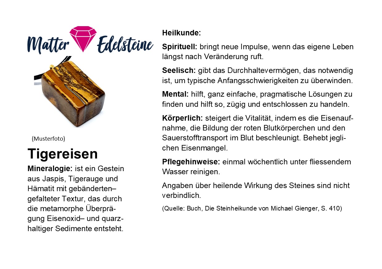 Tigereisen wird traditionell mit Stärke, Ausdauer und innerer Stabilität in Verbindung gebracht und wird von vielen Menschen als kraftvoller Begleiter geschätzt.